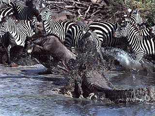 Shooting slow-motion of wildlife in the Serengeti, Tanzania Leaping crocodiles of the Grumeti River
